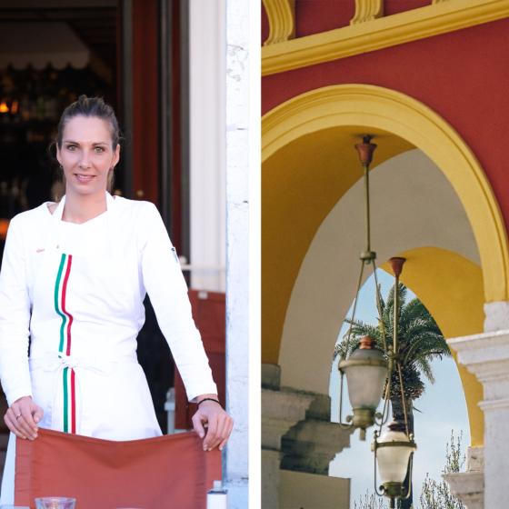 Cet été, cap au Sud ! Nice c’est le marché Saleya où tout le monde se tutoie, de la socca en veux-tu en voilà, les beignets de fleur de courgette, la pissaladière, les petits farcis… Celle qu’on appelle « Nissa la bella » a longtemps appartenu à nos voisins italiens, et elle a gardé ce que la Botte a de meilleur : la douceur de vivre, l’amour des bons produits, le sens de la fête et un soupçon de farniente. Au cœur de tout ça il y a bien sûr la place Masséna, avec ses arcades qui rappellent la piazza Vittorio Veneto à Turin. Devant les façades rouge ligure, c’est là que Gina a dégoté le meilleur endroit de la Méditerranée pour installer sa brasserie incontournable.